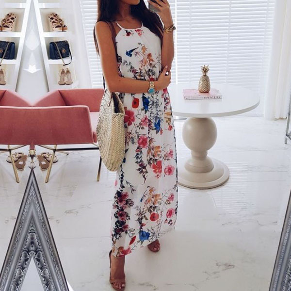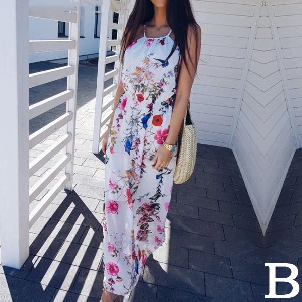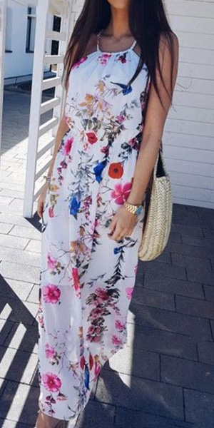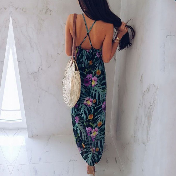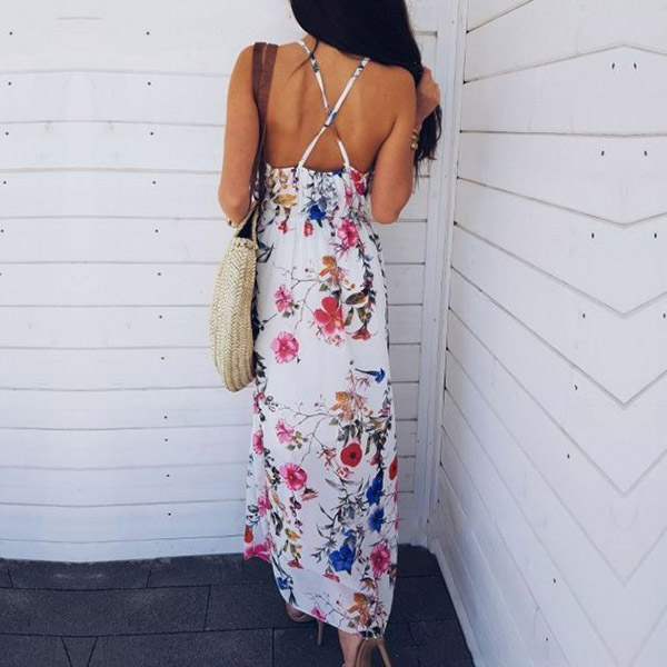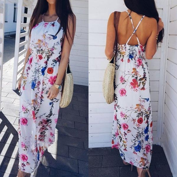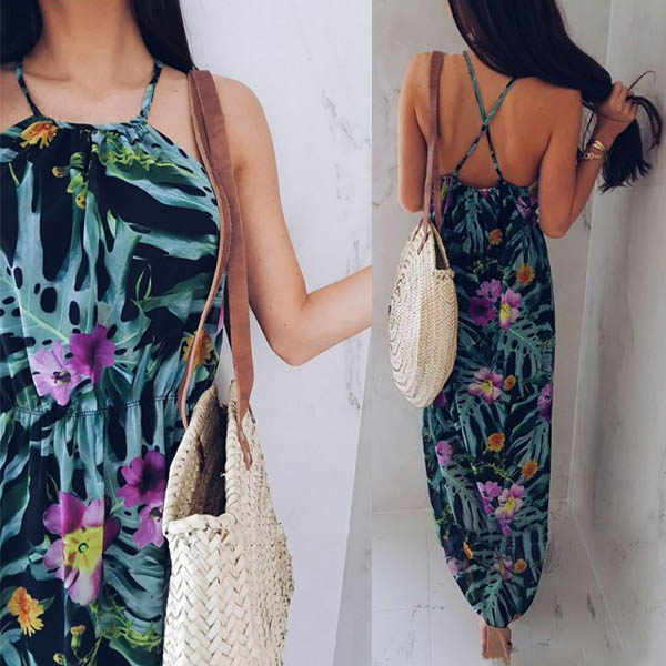 Features vibrant floral print,this dress can help you win more eyes. Sling style,the backless
