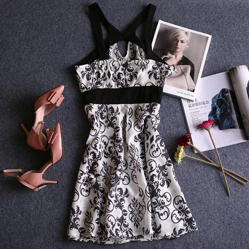 This dress features sling style,with backless design makes it look more sexy and sultry. And its printed