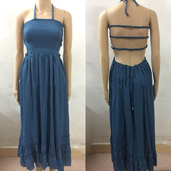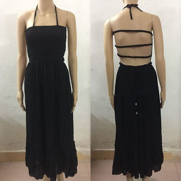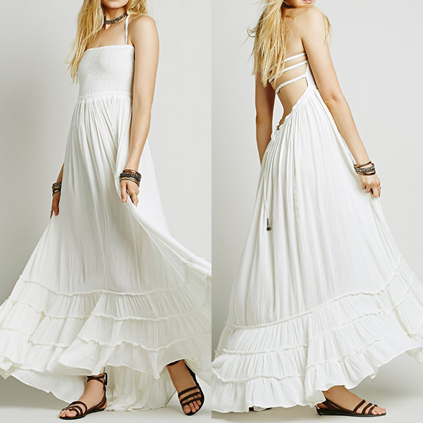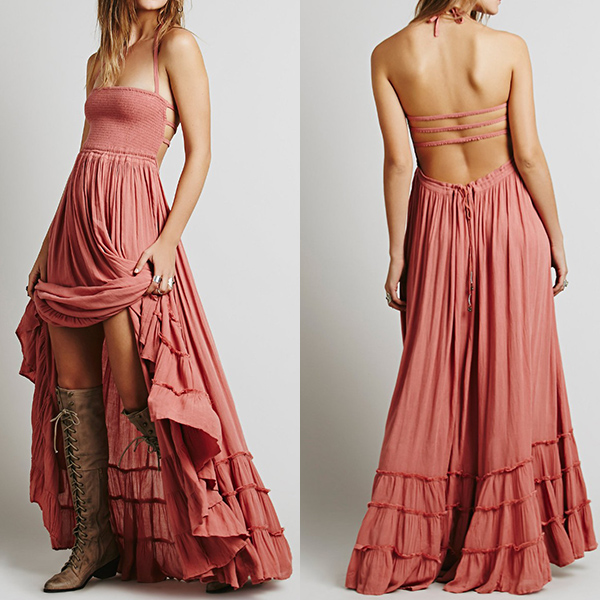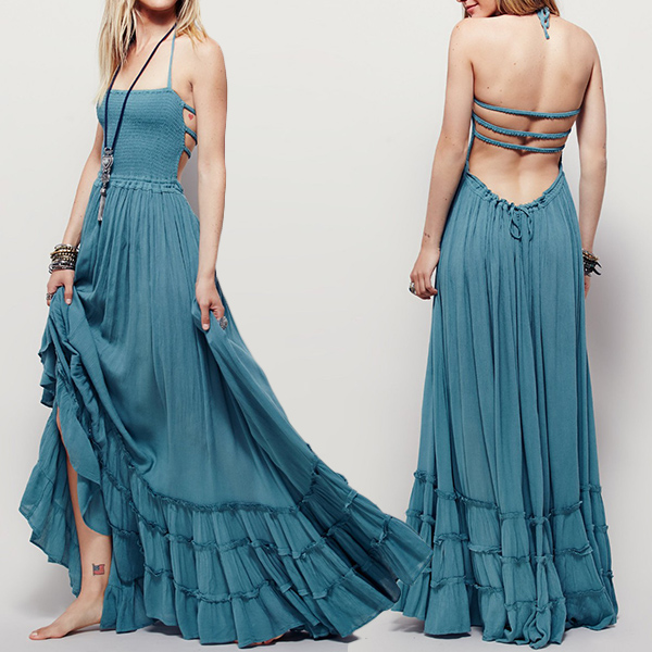 backless and fluffy ruffle hem,which makes this dress look so sexy and alluring. On the sunny days,adding a sweet
