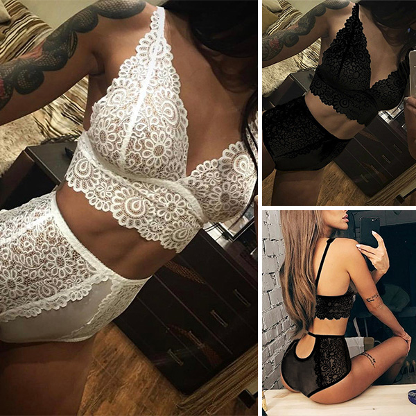 You can showcase your seductive curve and alluring style through this lace lingerie set. See-through lace style,including