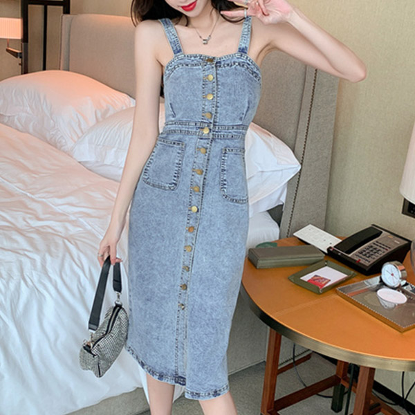 Update your wardrobe ensemble with this denim dress. Sling style,the backless design can showcase your sexy style,while the fit silhouette design will showcase your slender figure. You can dress it up with your sexyheels to get yourself prepared for your weekend gatherings.