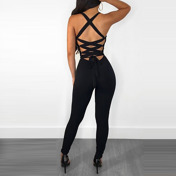 You are bound to be the focus when you slip into this jumpsuit. It comes with a solid color,the backless
