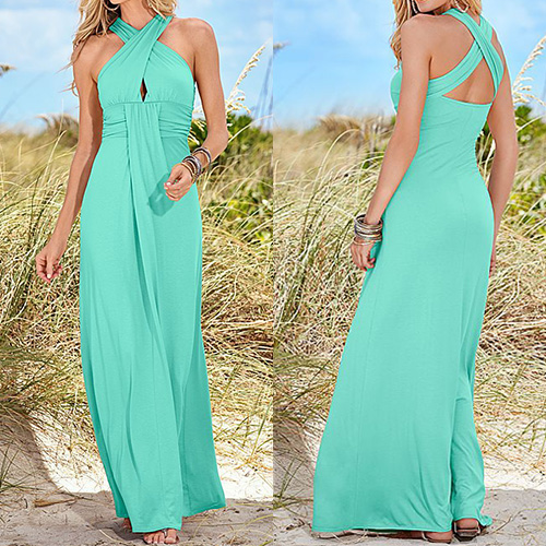 backless,high waist and a maxi length,this dress is the key to give you a sexy and charming style.