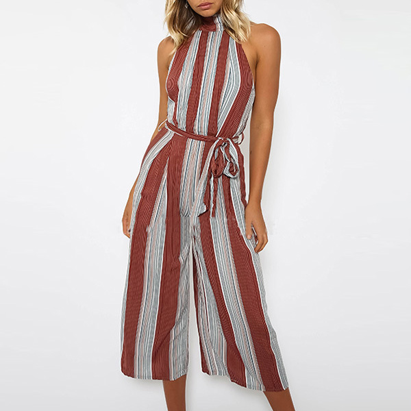 jumpsuit. Halter style with backless design makes this piece look more alluring,and its high waist and sleek silhouette can