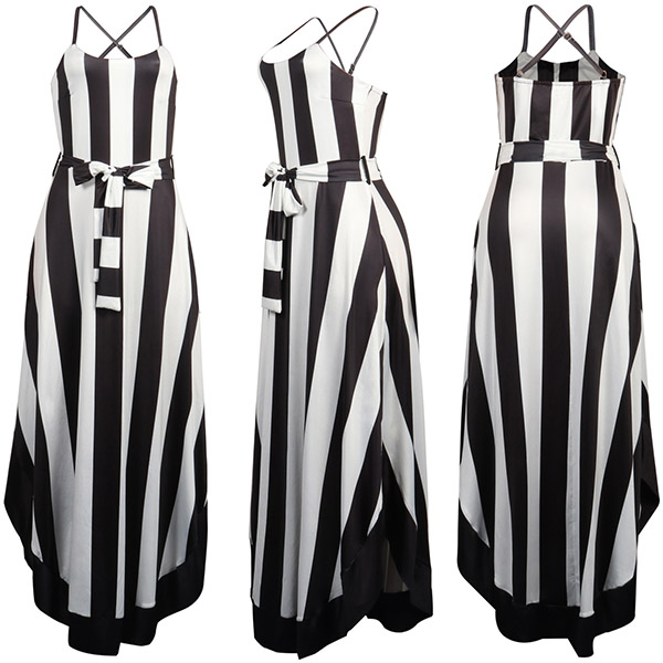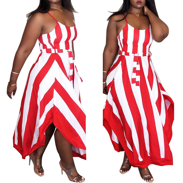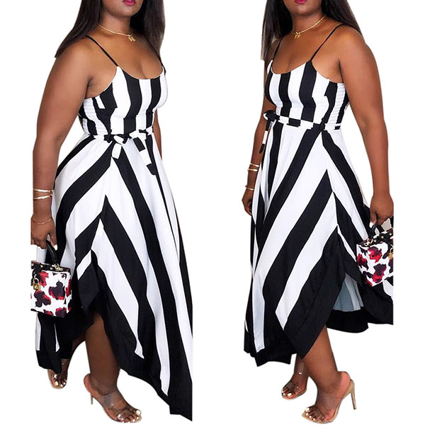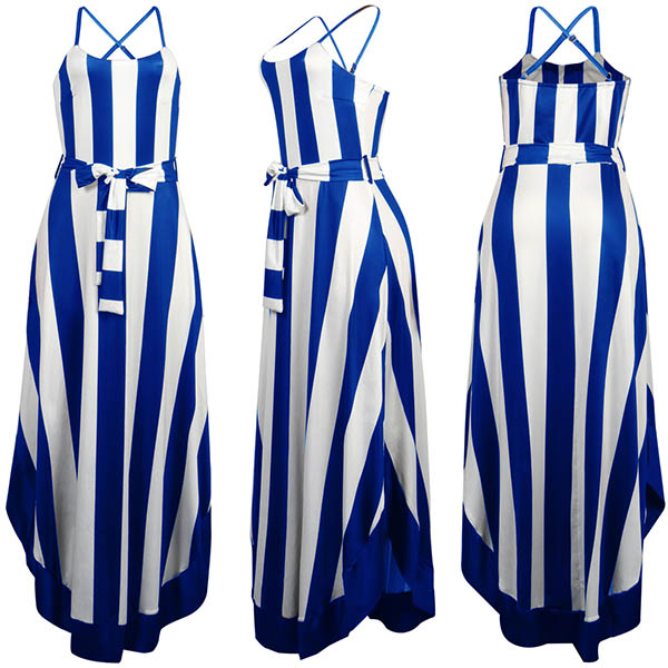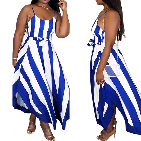 This sling dress is the perfect addition to your warmer weather wardrobe ensemble. Striped element design