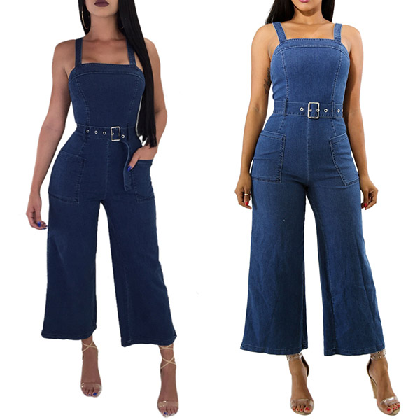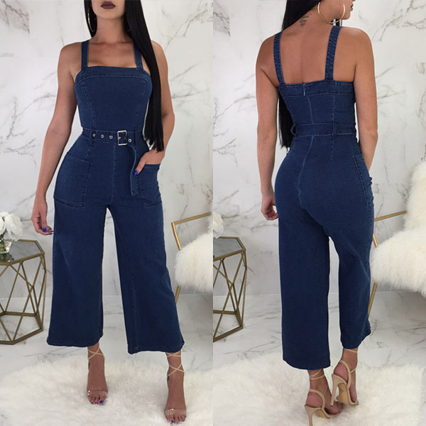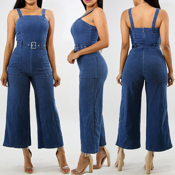 Seductive appeal can come easily when you dress yourself up with this denim jumpsuit. Sling style,