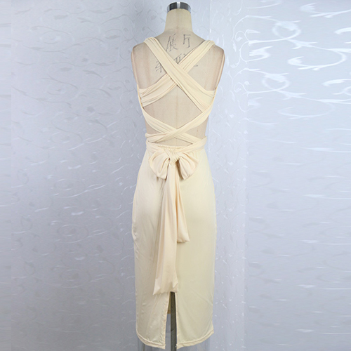 curve and a sultry look. Outfitted with backless,hollow out and a body-flattering silhouette,this dress is
