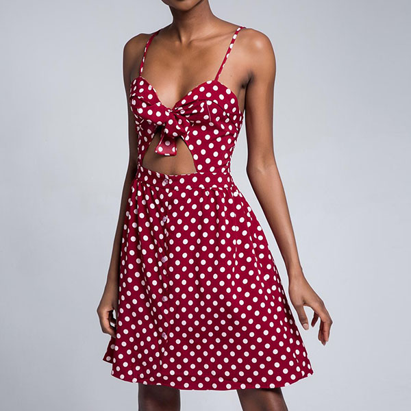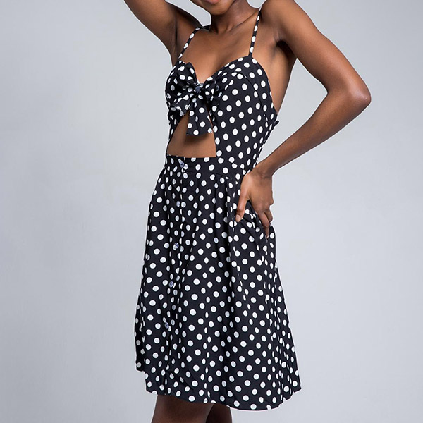 Designed with chic and playful dots printed pattern,the backless,hollow out high waist design will further
