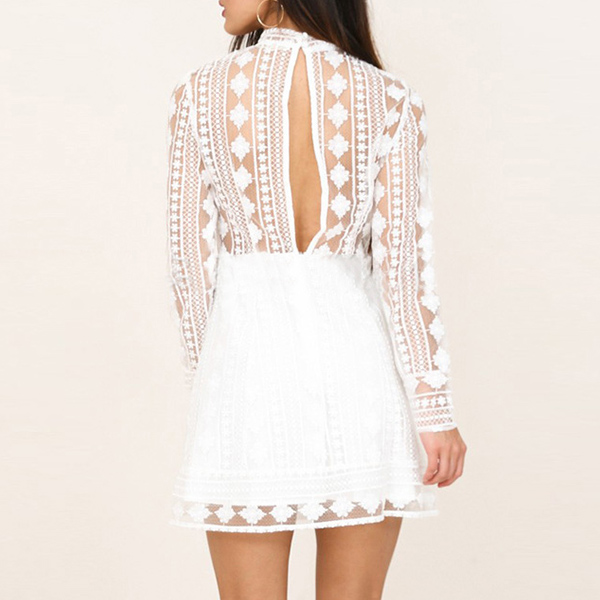 The backless and hollow out lace spliced design will further highlight your female charm. Dress up your sexy heels and