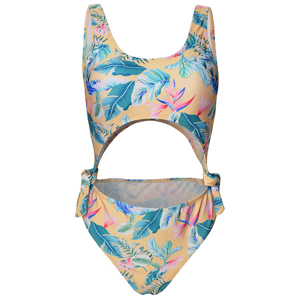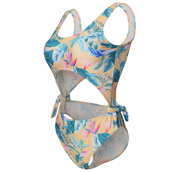 Wanna win more eyes when walking on the beach? Then slip into this one-piece swimsuit! Features leaf printed pattern,the backless and hollow out design make it look more alluring. Of course your seductive curve and charming skin can be shown in this swimsuit!