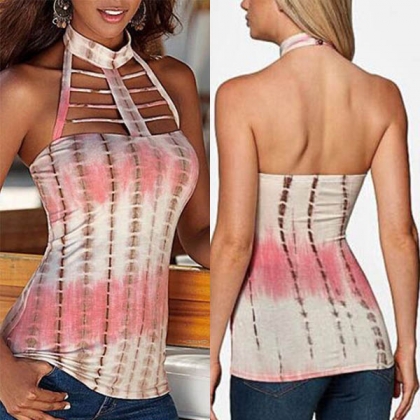 This halter top features chic printed pattern,the backless and hollow out design will give you a sexier look.