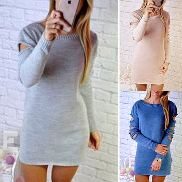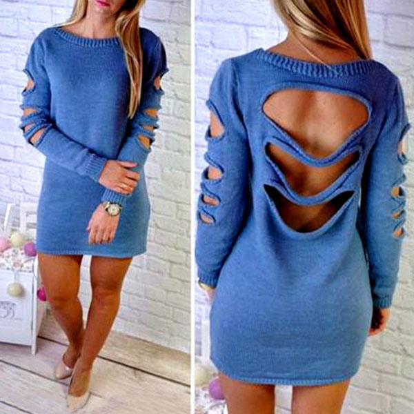 Solid color style,with long sleeve and round neck design,the hollow out ripped design at