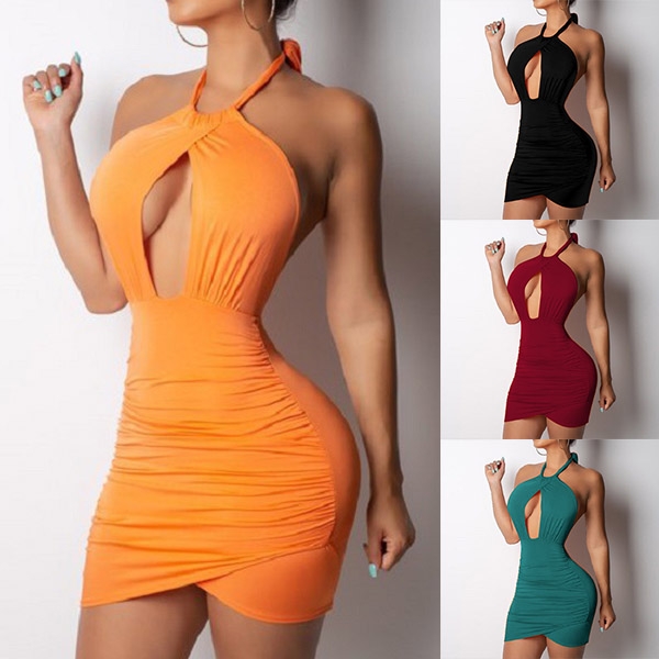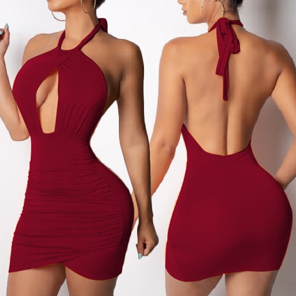 choice. Boasts a solid color,the backless and hollow out design make this halter dress look very sexy.