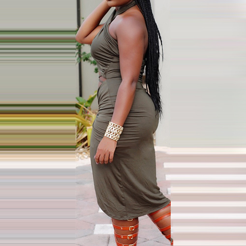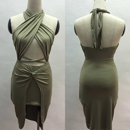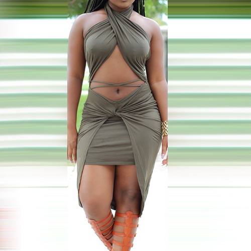 Hey,ladies,express your sexy style and seductive curve boldly via this dress. Crossover halter style,