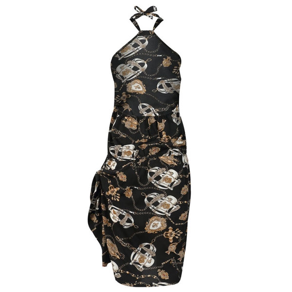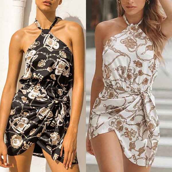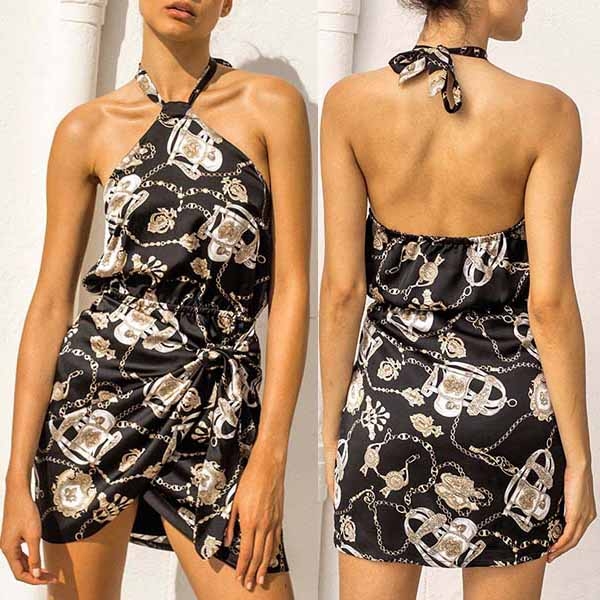 the backless and halter design will give you an alluring look,while the irregular hem and knotted design can