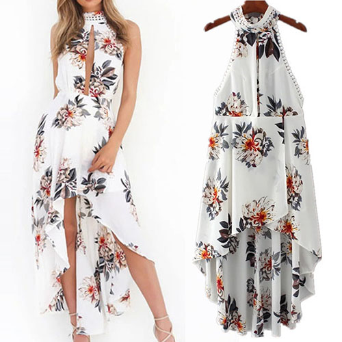 for a more alluring look. Its vibrant floral print for a touch of eye-catching vibe while the irregular hem elevates the flirty appeal of it.