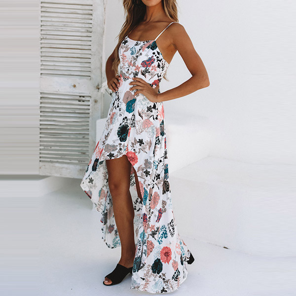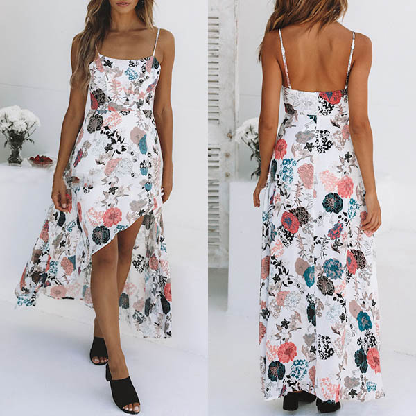 dress can give you a perfect transition. Features vibrant floral print,the backless,sling and irregular hem