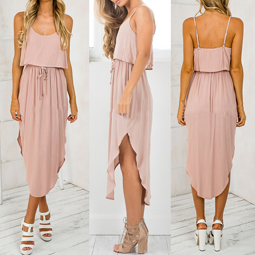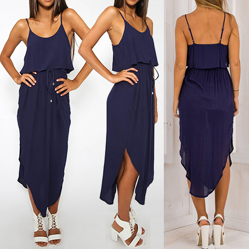 Sling style,its backless and irregular hem design makes this dress sexy and charming,while its cozy