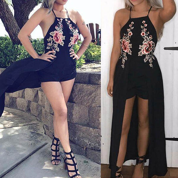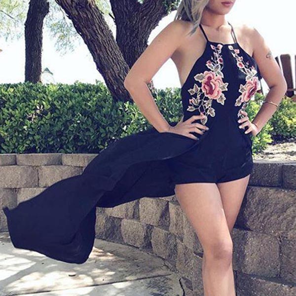 Bear the envious eyes wherever you go thanks to the feminine taste of this romper. Sling style,the backless