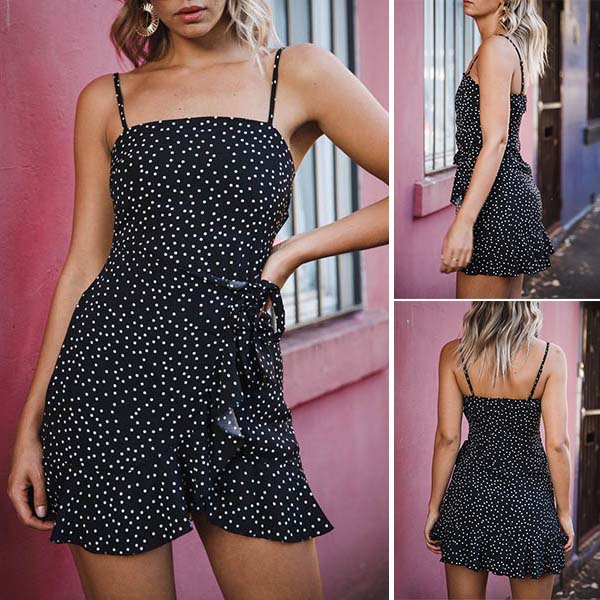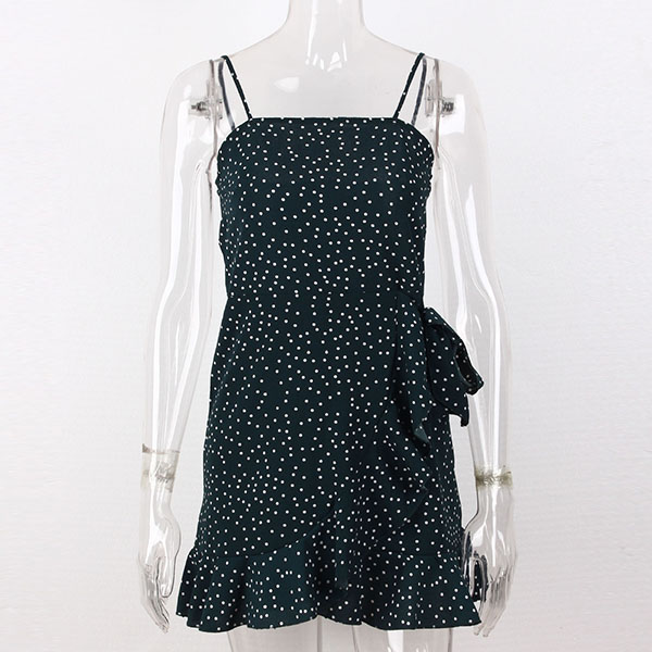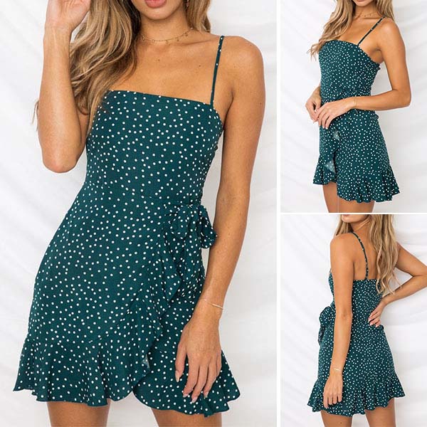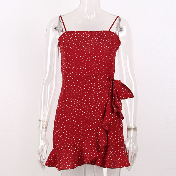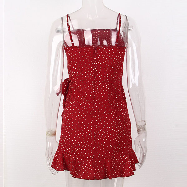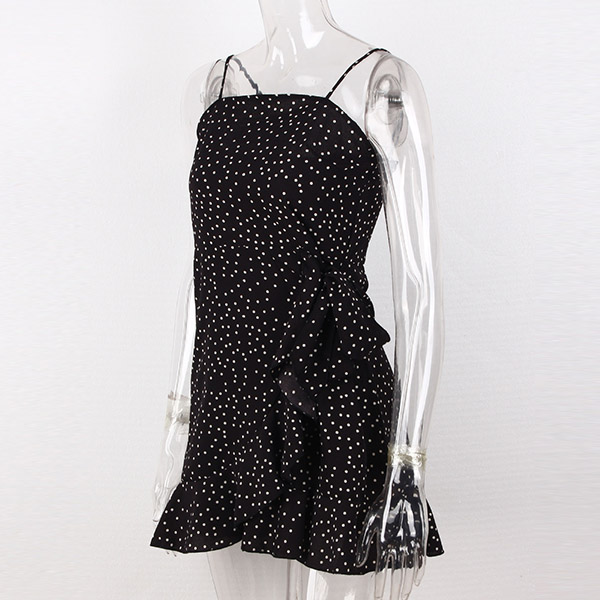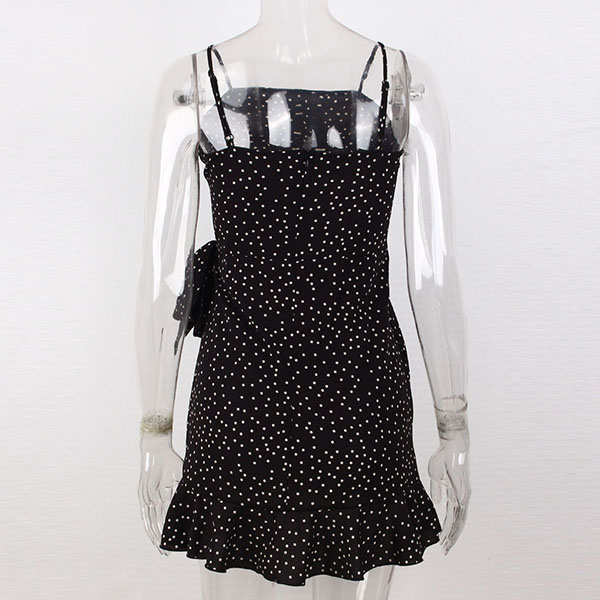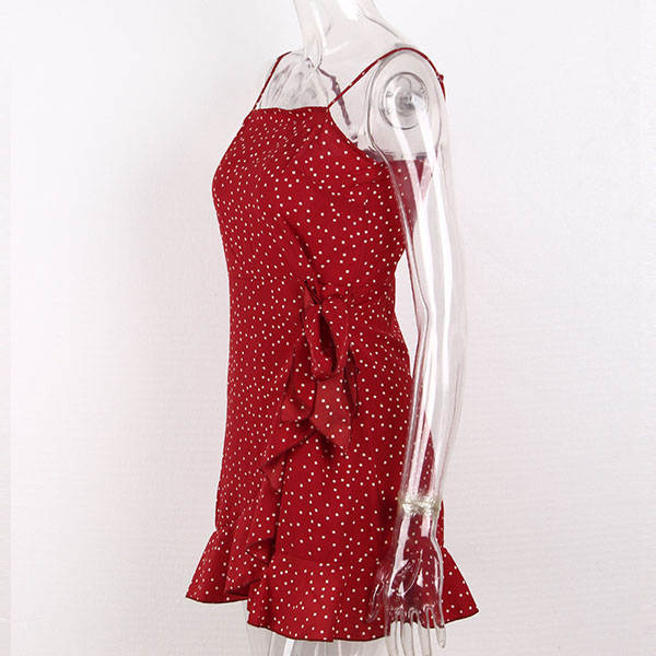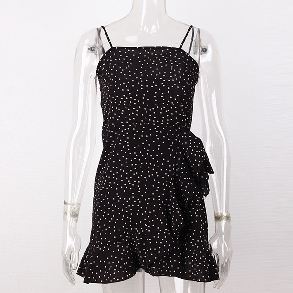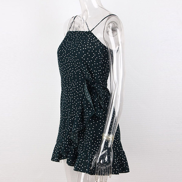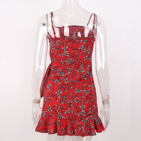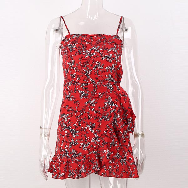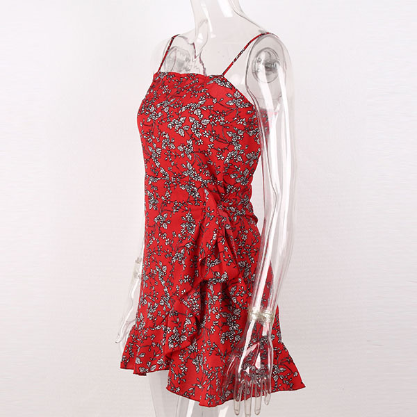 Sexy Backless Irregular Ruffle Hem Printed Sling Dress