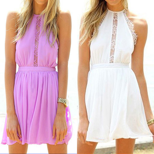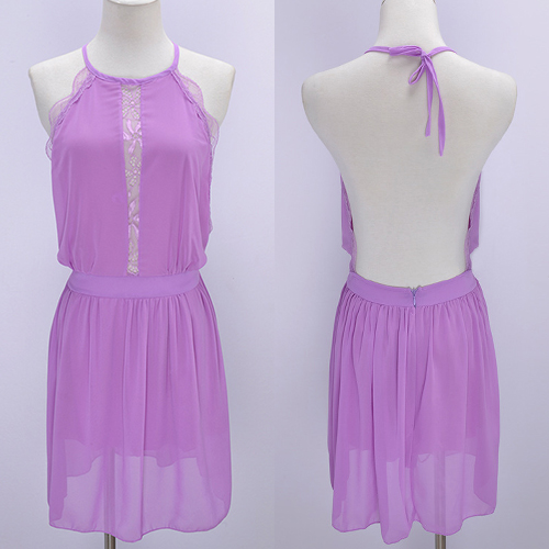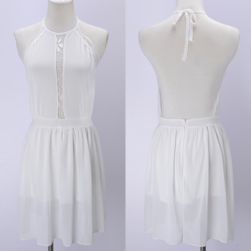 Halter style,its lace spliced and backless design makes it look more feminine and sexy.