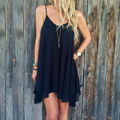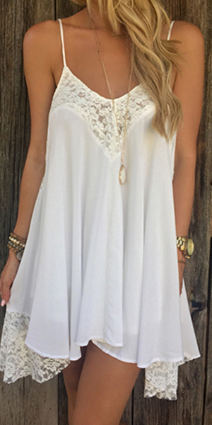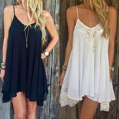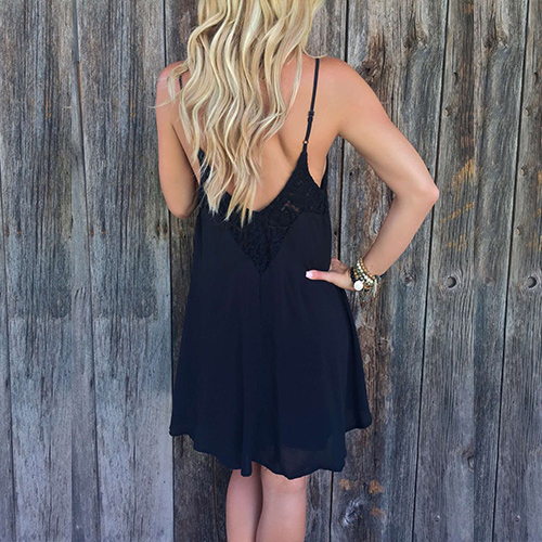 Let your charming summer style shine in this dress! Sling style,its backless,lace spliced and