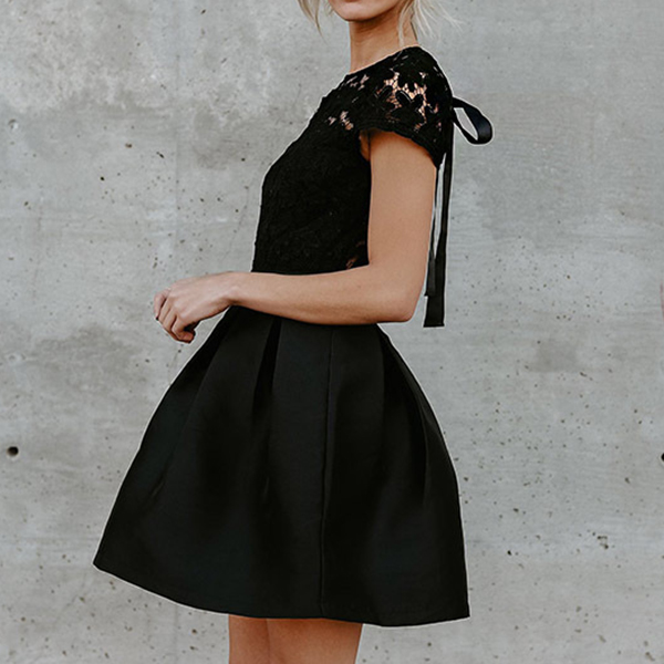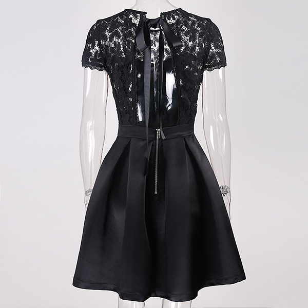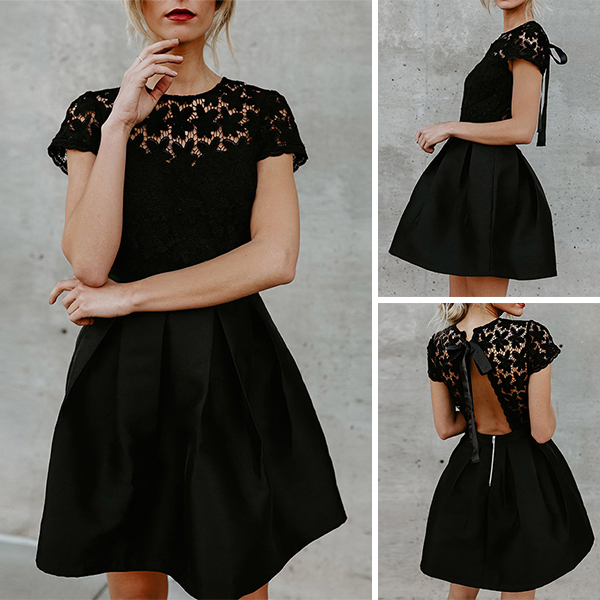 yet mysterious black tone,the backless and lace spliced design will further enhance your feminine appeal.