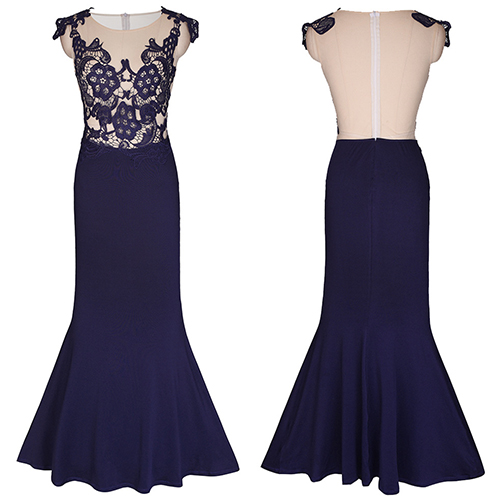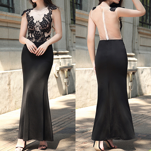 to help you achieve that status. Its backless,floor-length hem,see-through gauze and lace spliced details make this
