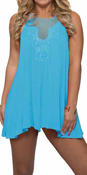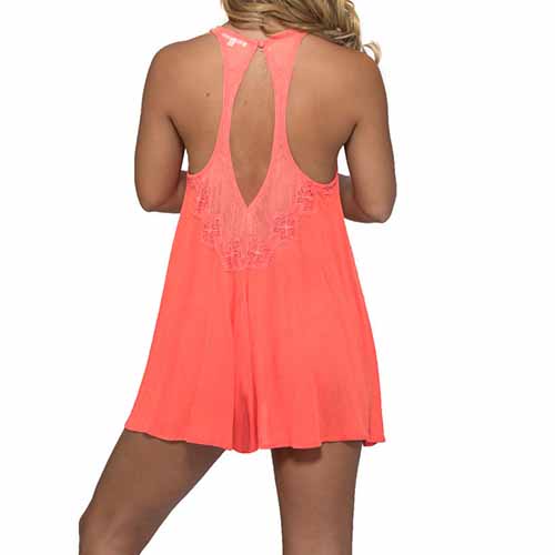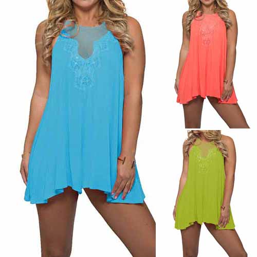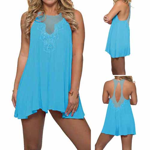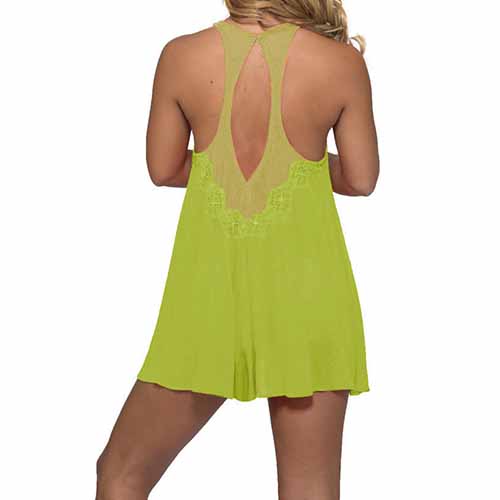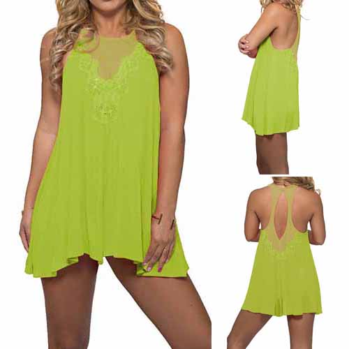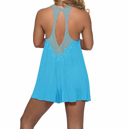 with sleeveless,round neck and lace spliced design,sexy yet chic. You can slip into this dress for