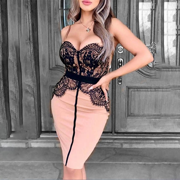 lace spliced details and a fit silhouette,this dress not only can cultivate your perfect curve,