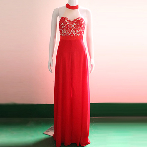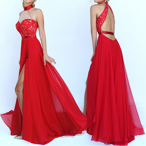 gives others a visual feast. Halter style accompanied with backless,slit hem and lace spliced design makes this