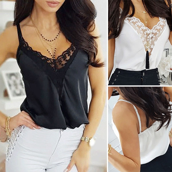 v-neck and lace spliced details will enhance its charm. It can expose your charming skin as well