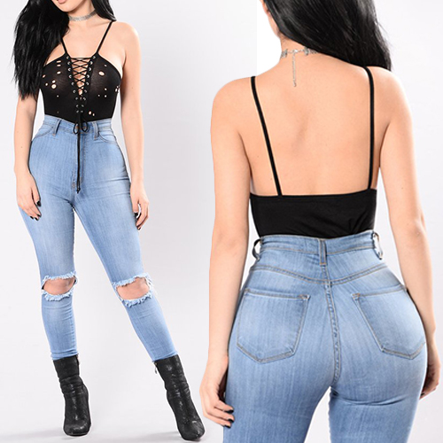 and ripped details,, this alluring bodysuit will exude your sexy and sultry sense. A good idea to match wih your high