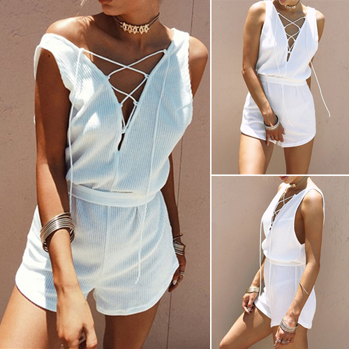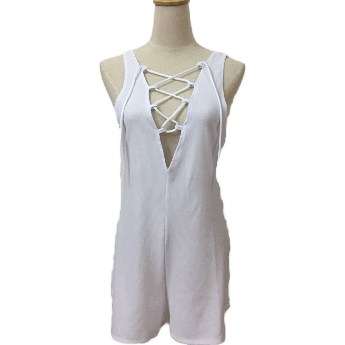 Opt for this romper for a sexy and charming look. Solid color style,designed with backless and a lace-up deep