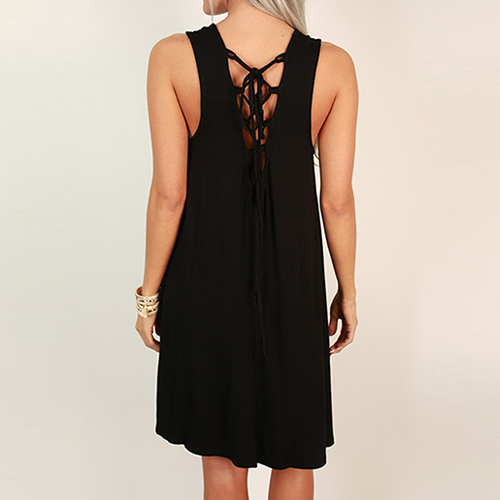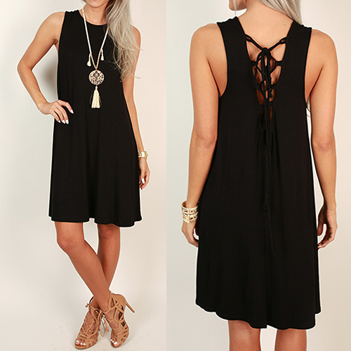 loose silhouette. The most eye-catching part is its backless and lace-up design at back. If