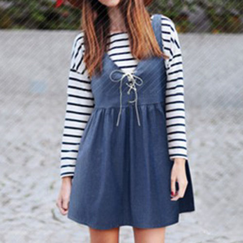 lace-up v-neck design gives you the chance to show off your feminine appearance. We suggest you matching it with