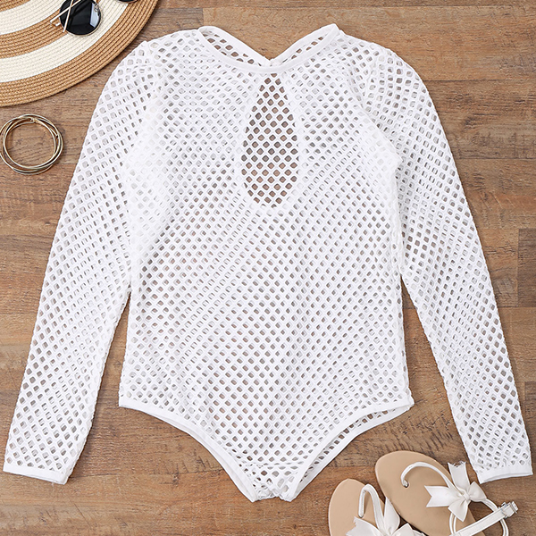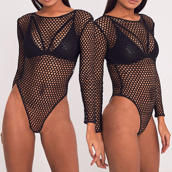 All eyes would be focused on you once you wear this hollow out fishnet bodysuit. It is styled with long sleeve,