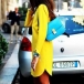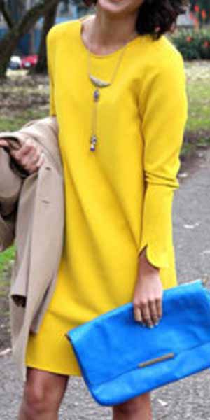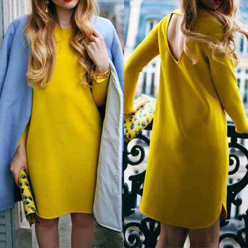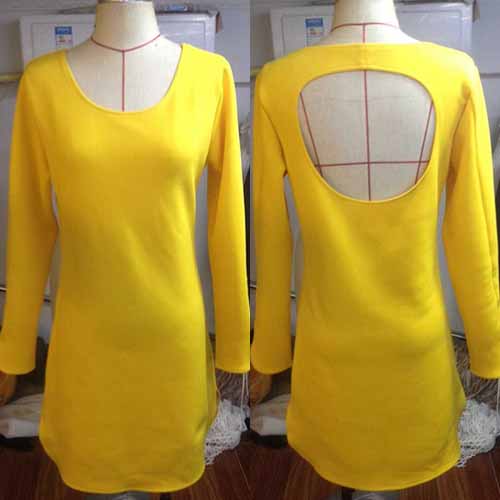This dress features bright yellow color,can easy to make you be the focus. Its backless design