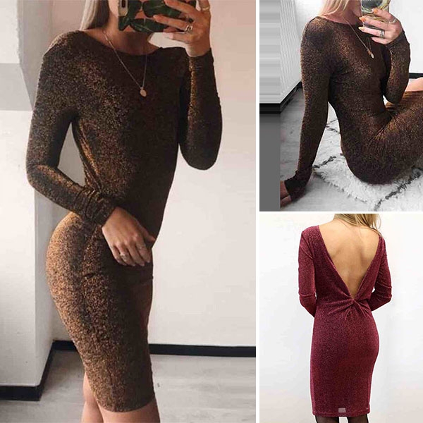 long sleeve,round neck and a fit silhouette,this dress can showcase your perfect figure. Moreover,