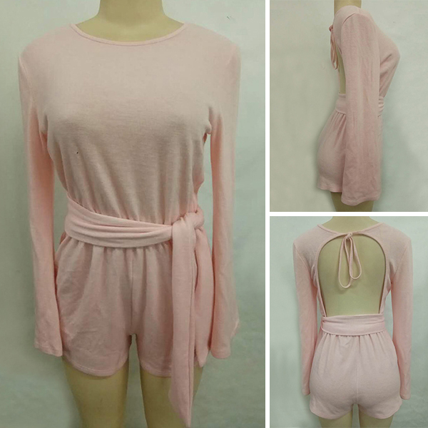 Solid color style,designed with long sleeve,round neck and a fit silhouette,with backless design makes this piece