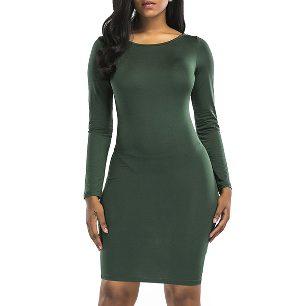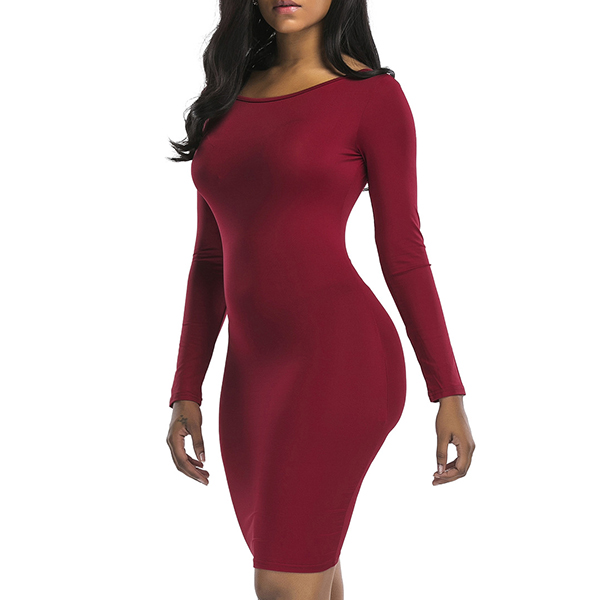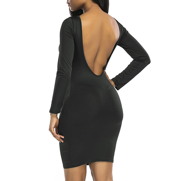 Sexy Backless Long Sleeve Round Neck Solid Color Tight Dress