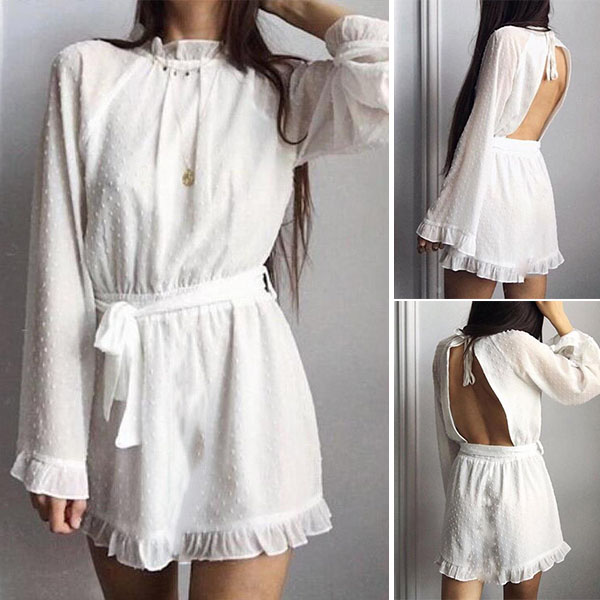 Wanna a sexy and charming dating look? Perhaps this long sleeve dress can help you. The backless