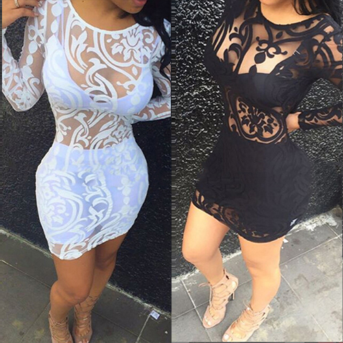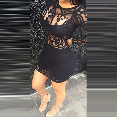 this see-through gauze dress! Designed with backless and a bodycon silhouette,this