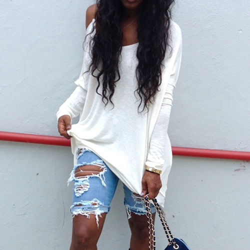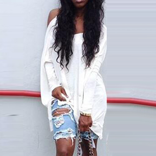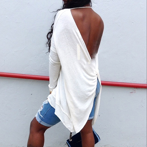 Easy to gain a chic and sexy style in this tops. Solid color stye,outfitted with long sleeve,slit hem