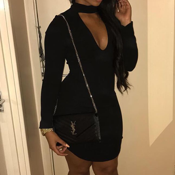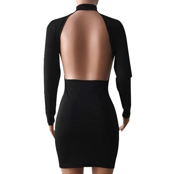 This bodycon dress boasts a classic yet mysterious black tone,accompanied with backless and hollow out design,