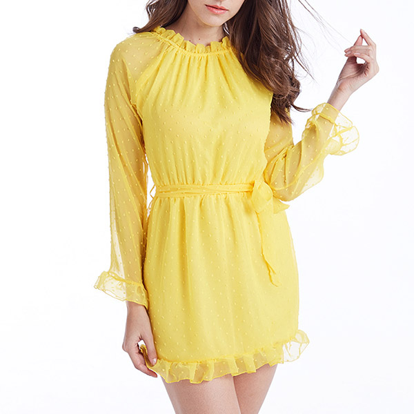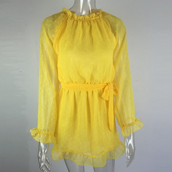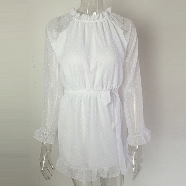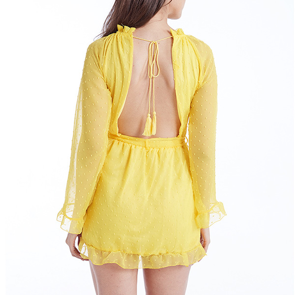Amplify your sweet and charming style with this dress. Its stunning details like backless,see-through and ruffle