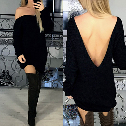 v-shaped backless design makes it look so seductive. Paired with your over the knee boots,you can't be more charming!