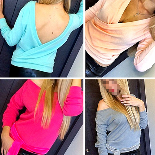 Solid color style,having two different wearing styles:you can make it as a backless t-shirt or