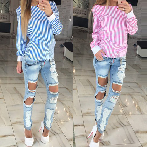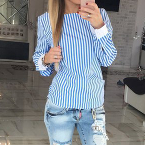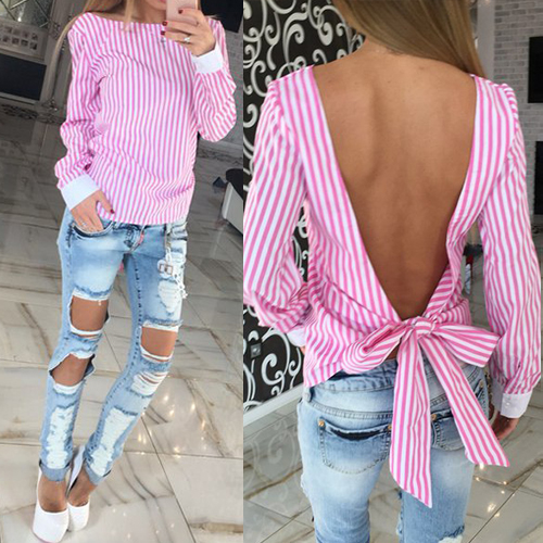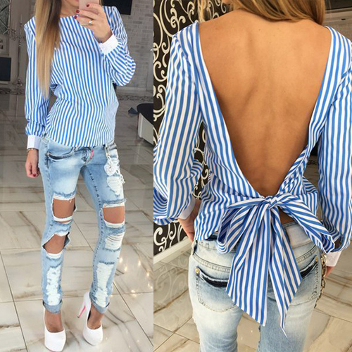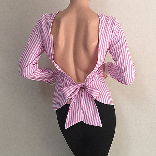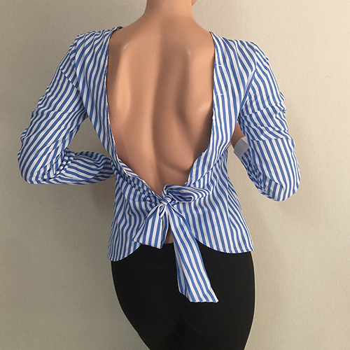 At your first sight,you would be attracted by this shirt. Striped style,its backless design makes it look