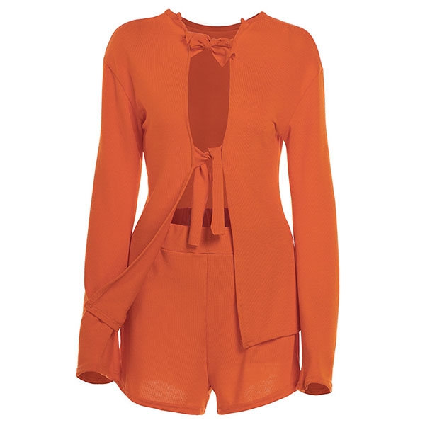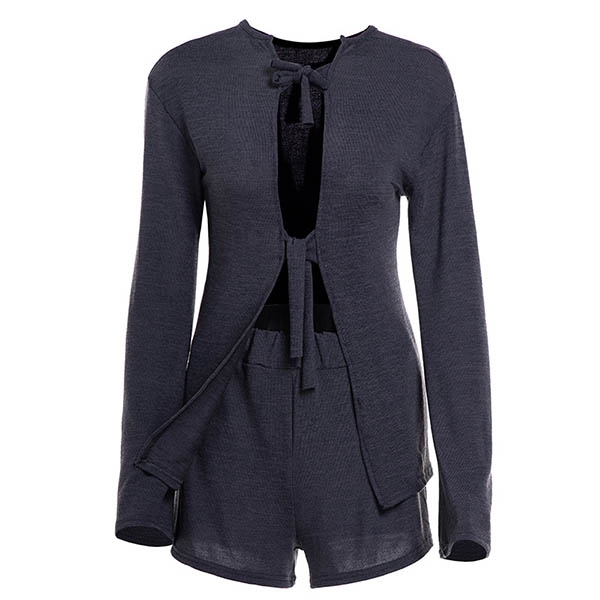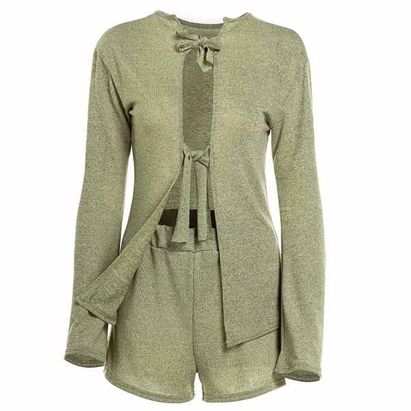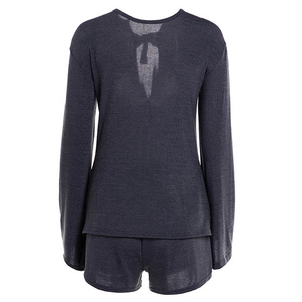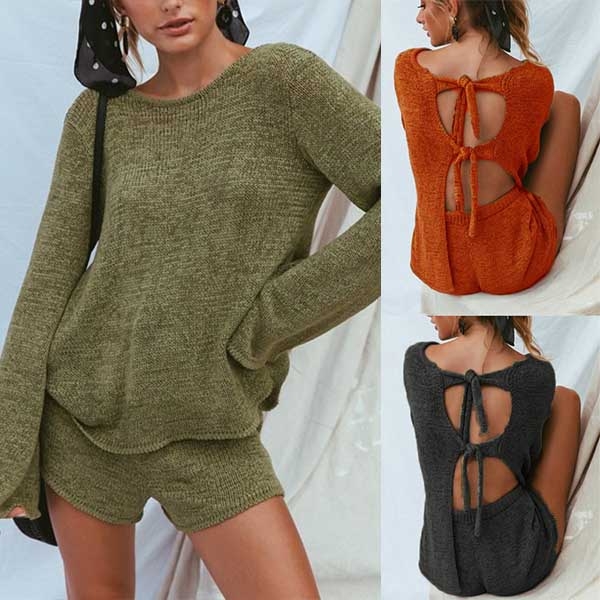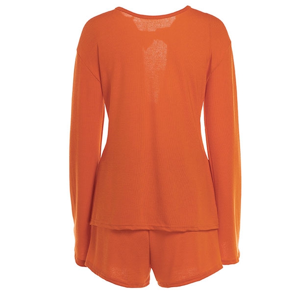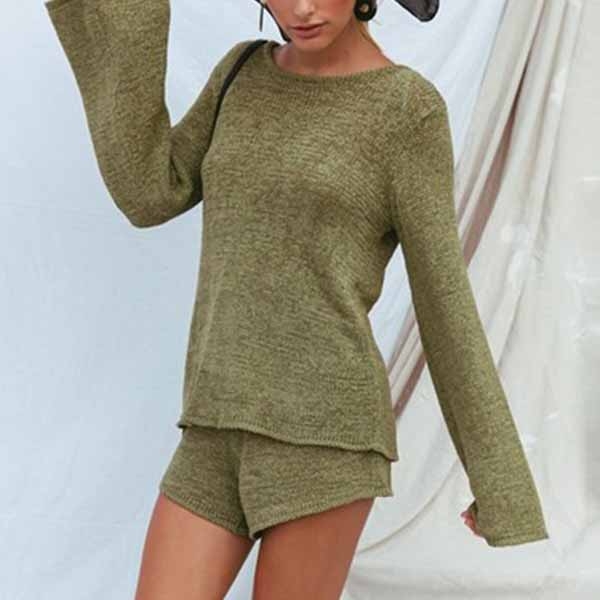 Update your weekend look with this two-piece set. It consists of a long sleeve round neck top and a shorts,